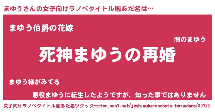 | 男性向けラノベタイトル風あだ名 | 『ノーゲーム・ノーマユウ』 |