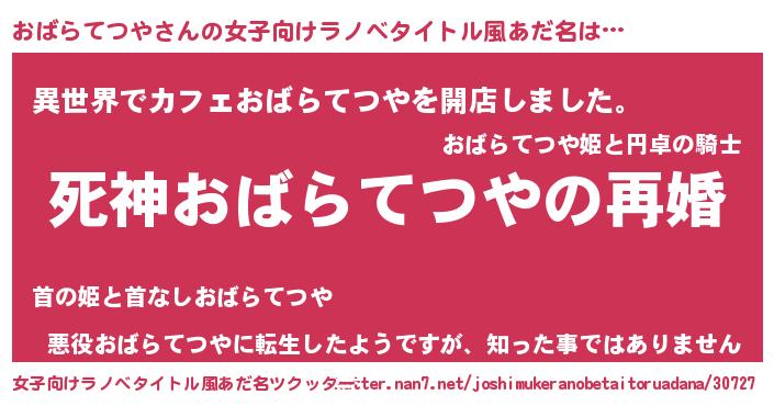 | 男性向けラノベタイトル風あだ名 | 『ノーゲーム・ノーオバラテツヤ』 |