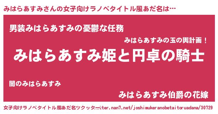 | 男性向けラノベタイトル風あだ名 | 『ミハラアスミアートオンライン』 |