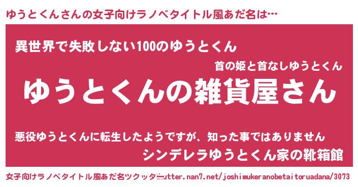 | 男性向けラノベタイトル風あだ名 | 『やはりゆうとくんの青春ラブコメはまちがっている 』 |