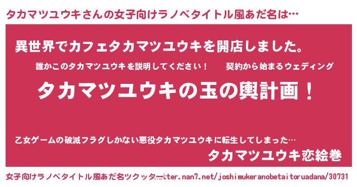| ファンタジー風あだ名 | 『ユリタカヴァット』『タカディッシュ』 |