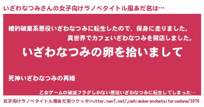| 男性向けラノベタイトル風あだ名 | 『ダンジョンにいざわなつみを求めるのは間違っているだろうか』 |