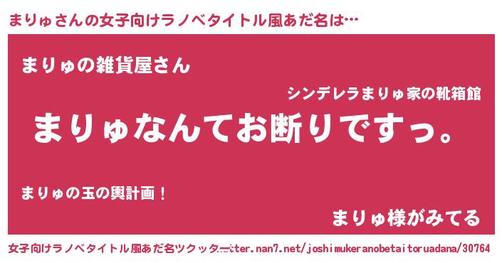 | 男性向けラノベタイトル風あだ名 | 『魔法科高校のまりゅ』 |