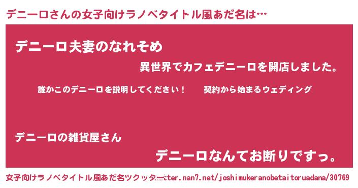 | 男性向けラノベタイトル風あだ名 | 『デニーロアートオンライン』 |