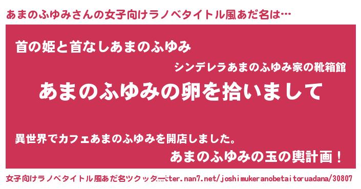 | 男性向けラノベタイトル風あだ名 | 『あまのふゆみの嫁は女の子じゃないと思った?』 |