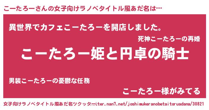 | 男性向けラノベタイトル風あだ名 | 『コータローアートオンライン』 |