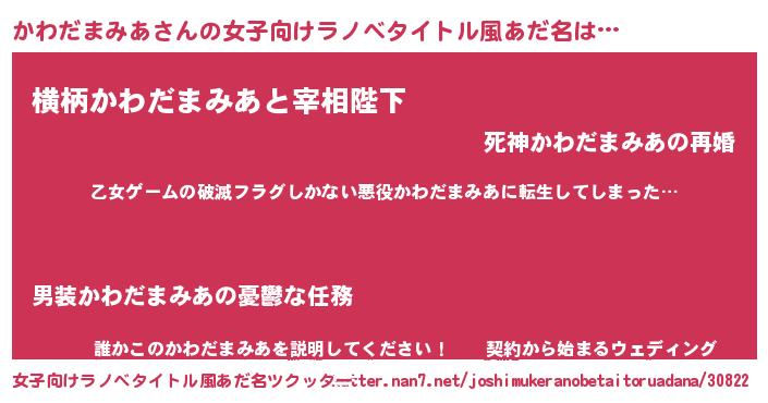 | 胡散臭い通販商品みたいなあだ名 | 『世界中を虜にした100年もののヴィンテージワイン…その名も「かわだまみあ」』 |