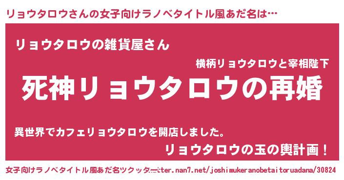 | 男性向けラノベタイトル風あだ名 | 『ノーゲーム・ノーリョウタロウ』 |