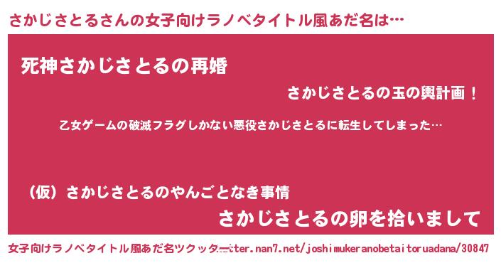| 胡散臭い通販商品みたいなあだ名 | 『世界中を虜にした100年もののヴィンテージワイン…その名も「さかじさとる」』 |
