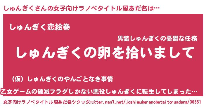 | 萌えアニメ | 主人公(しゅんぎく)のあだ名『 しゅしゅ』 |