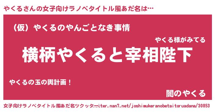 | ヘコむあだ名 | 『やくにー』『やくっ子』『なまこ酢』 |