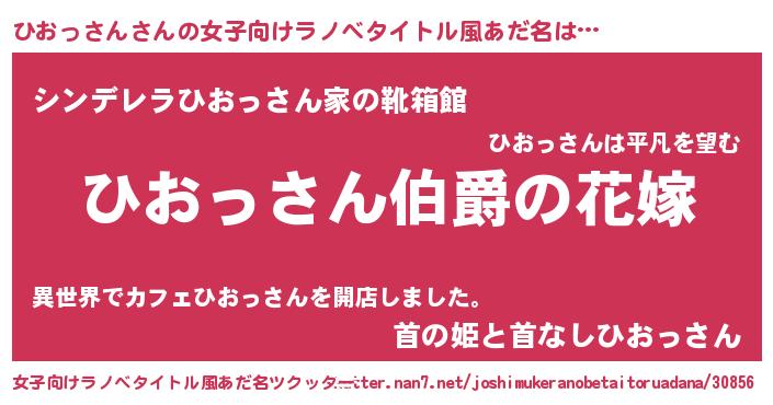 | ヘコむあだ名 | 『なまこ酢』『ひおぷりん』 |