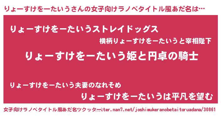 | ヘコむあだ名 | 『りょにゅー』『りょぷりん』 |