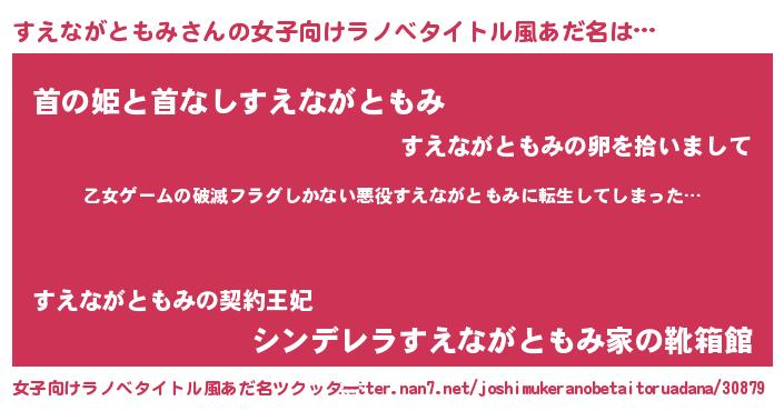 | 意味不明あだ名 | 『住所不定無職すえながともみ(14歳)』 |