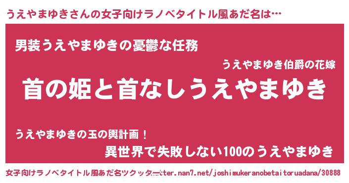 | 胡散臭い通販商品みたいなあだ名 | 『絶対に幸福をもたらす健康食品…その名も「うえやまゆき」』 |
