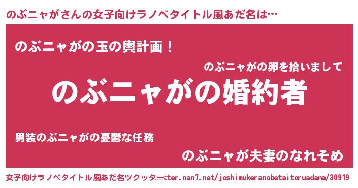 | 胡散臭い通販商品みたいなあだ名 | 『運命の人と巡り会える高級そうな壺…その名も「のぶニャが」』 |