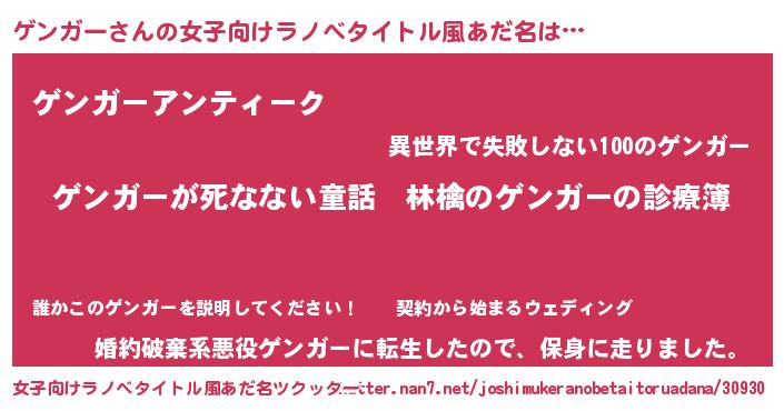 | ヘコむあだ名 | 『ゲンガー(遠い目)』『ゲンっふぃ~』 |