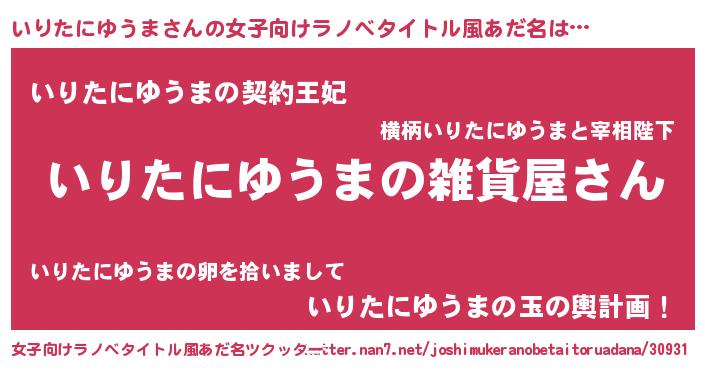 | 男性向けラノベタイトル風あだ名 | 『やはりいりたにゆうまの青春ラブコメはまちがっている 』 |