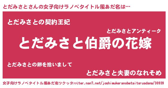 | 男性向けラノベタイトル風あだ名 | 『やはりとだみさとの青春ラブコメはまちがっている 』 |