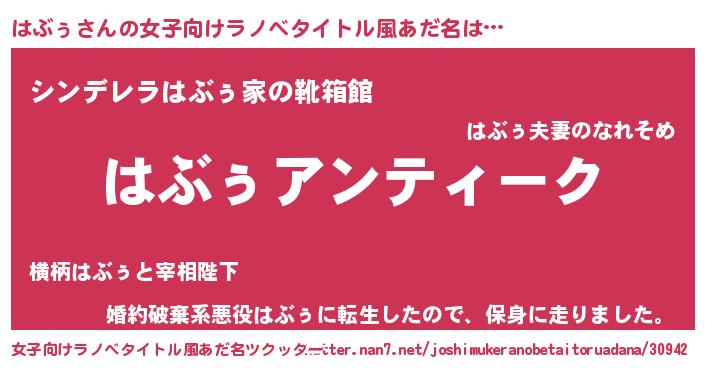 | 男性向けラノベタイトル風あだ名 | 『魔法科高校のはぶぅ』『緋弾のハブゥ』 |