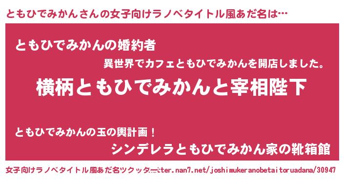 | 男性向けラノベタイトル風あだ名 | 『ともひでみかんに滅ぼされるだけの簡単なお仕事です』 |