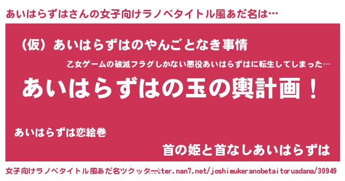 | 胡散臭い通販商品みたいなあだ名 | 『億万長者になれるブレスレット…その名も「あいはらずは」』 |