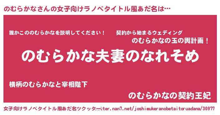 | 男性向けラノベタイトル風あだ名 | 『おまえをオタクにしてやるから、俺をのむらかなにしてくれ! 』 |