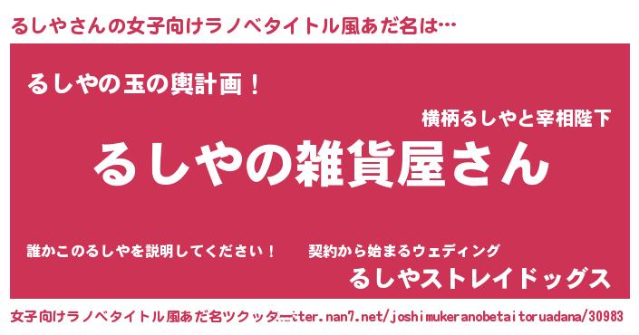 | 男性向けラノベタイトル風あだ名 | 『やはりるしやの青春ラブコメはまちがっている 』 |