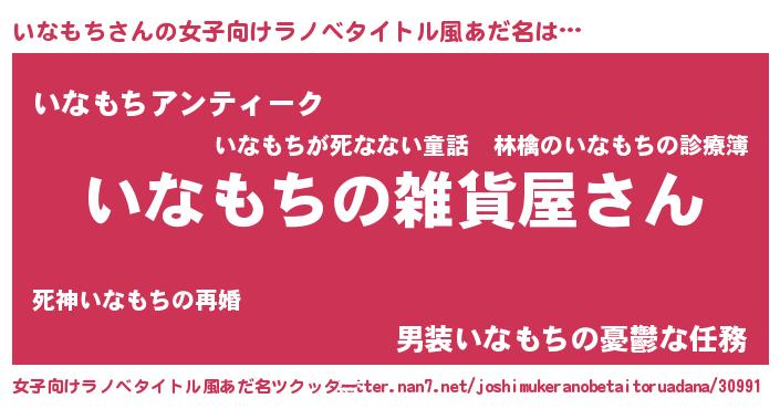 | 男性向けラノベタイトル風あだ名 | 『やはりいなもちの青春ラブコメはまちがっている 』 |