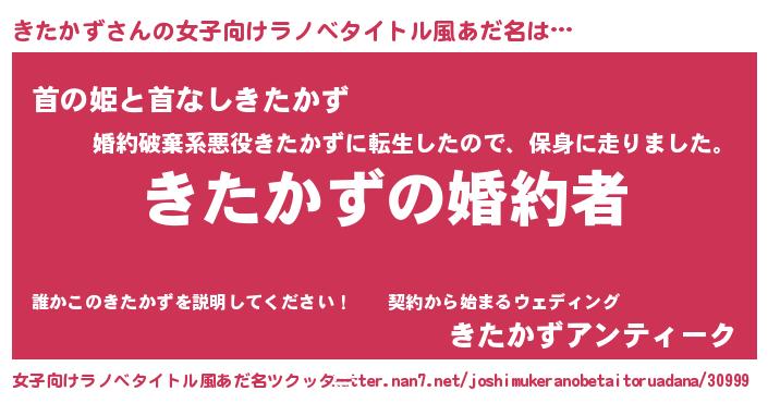| 男性向けラノベタイトル風あだ名 | 『うちの娘の為ならば、俺はもしかしたらきたかずも倒せるかもしれない。』 |