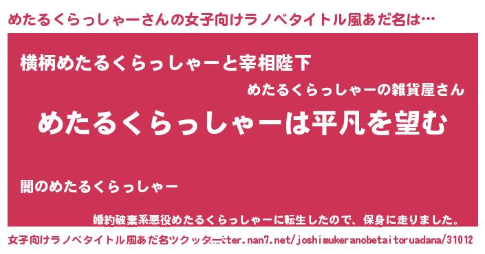 めたるくらっしゃーさんの女子向けラノベタイトル風あだ名