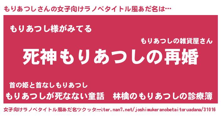 | 男性向けラノベタイトル風あだ名 | 『ノーゲーム・ノーモリアツシ』 |