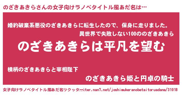 | 男性向けラノベタイトル風あだ名 | 『ダンジョンにのざきあきらを求めるのは間違っているだろうか』 |