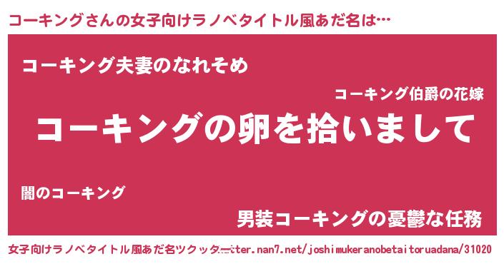 | ヒーロー風カッコイイあだ名 | 『魔戒騎士コー』『愛の使者コーキング』 |