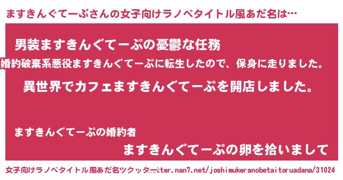 | 胡散臭い通販商品みたいなあだ名 | 『前代未聞の水素水…その名も「ますきんぐてーぷ」』 |