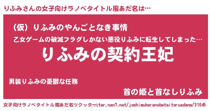 | 男性向けラノベタイトル風あだ名 | 『りふみという概念が存在しない退屈な世界 』 |