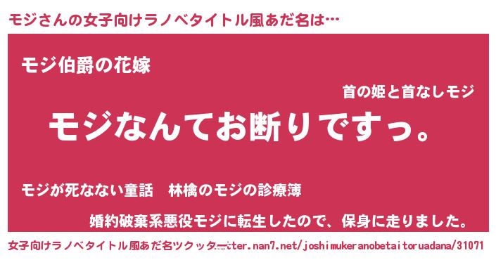 | 男性向けラノベタイトル風あだ名 | 『魔法科高校のモジ』『モジスレイヤー』 |