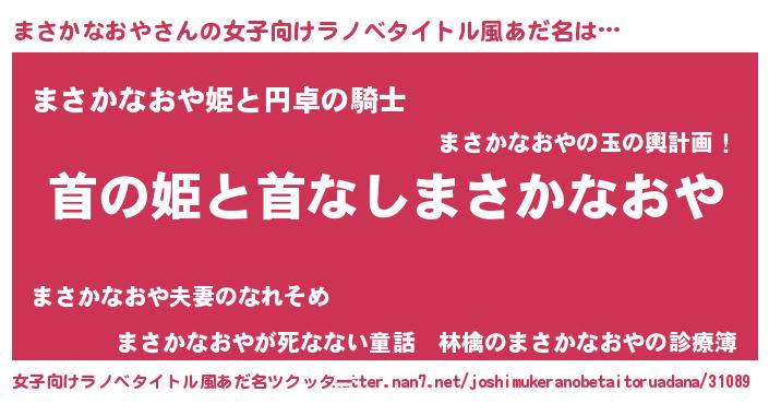 | 男性向けラノベタイトル風あだ名 | 『はたらくまさかなおやさま!』 |