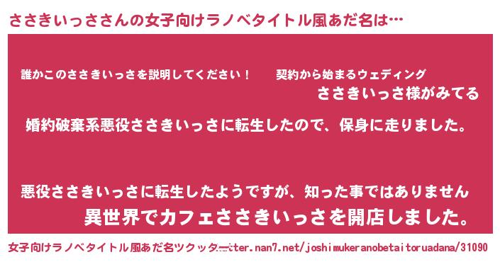 | 胡散臭い通販商品みたいなあだ名 | 『必ず成功するブレスレット…その名も「ささきいっさ」』 |