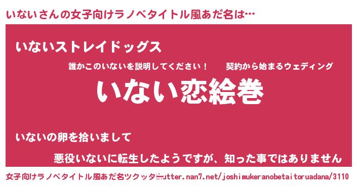 | 男性向けラノベタイトル風あだ名 | 『ノーゲーム・ノーイナイ』 |