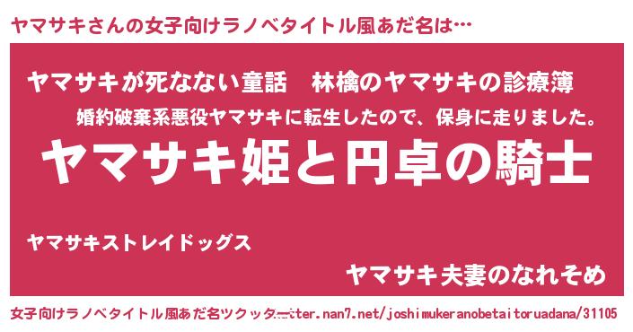 | 男性向けラノベタイトル風あだ名 | 『ヤマサキの憂鬱』『魔弾の王とヤマサキ』 |
