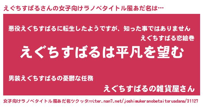 | 男性向けラノベタイトル風あだ名 | 『ダンジョンにえぐちすばるを求めるのは間違っているだろうか』 |