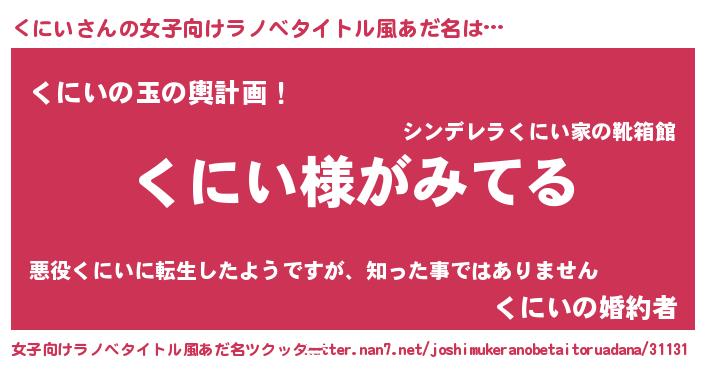 | 男性向けラノベタイトル風あだ名 | 『くにいの嫁は女の子じゃないと思った?』 |