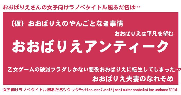 | 男性向けラノベタイトル風あだ名 | 『魔法科高校のおおばりえ』 |