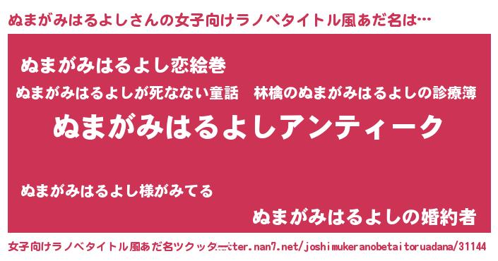 | 意味不明あだ名 | 『自称ぬまがみはるよし』 |
