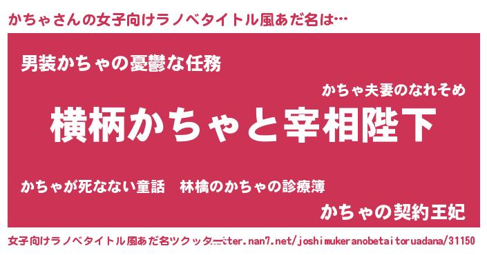 | 男性向けラノベタイトル風あだ名 | 『かちゃに滅ぼされるだけの簡単なお仕事です』 |