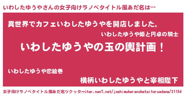 | ヘコむあだ名 | 『いわしたゆうや(笑)』『いわにー』 |