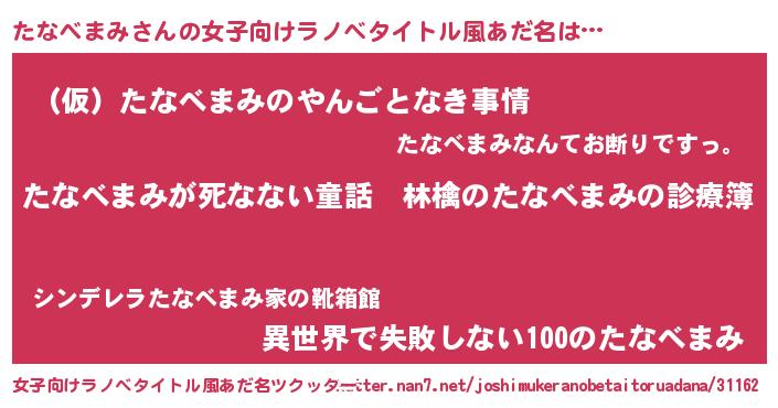 | 男性向けラノベタイトル風あだ名 | 『魔弾の王とたなべまみ』 |