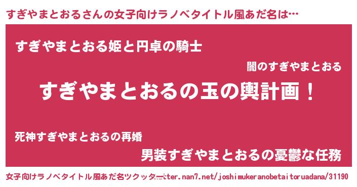 | 胡散臭い通販商品みたいなあだ名 | 『億万長者になれる霊験あらたかなお札…その名も「すぎやまとおる」』 |