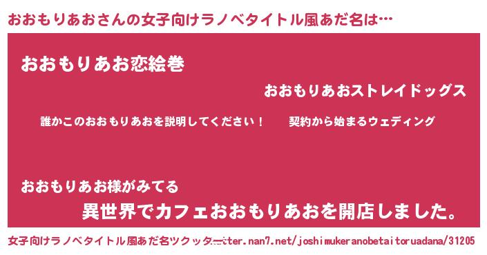 | 男性向けラノベタイトル風あだ名 | 『オオモリアオアートオンライン』 |